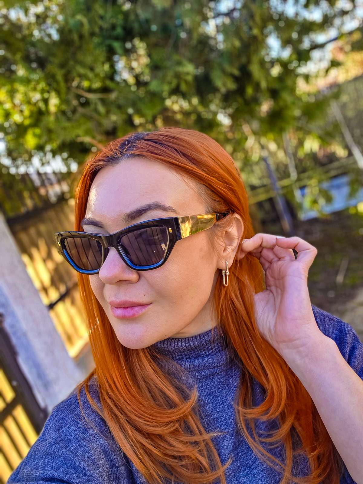 Ochelari de soare tip „Cat Eye” retro, cu brațe plate și design ascuțit